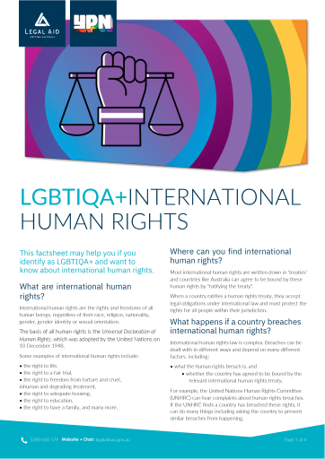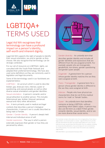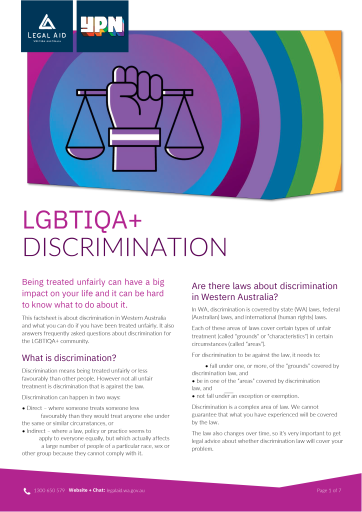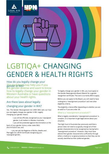 YPN teamed up with Legal Aid WA to provide the community with accurate and comprehensive legal fact sheets about discrimination, transgender health rights, and international human rights. Download your free copy here! For more info and legal advice, contact Legal Aid WA.